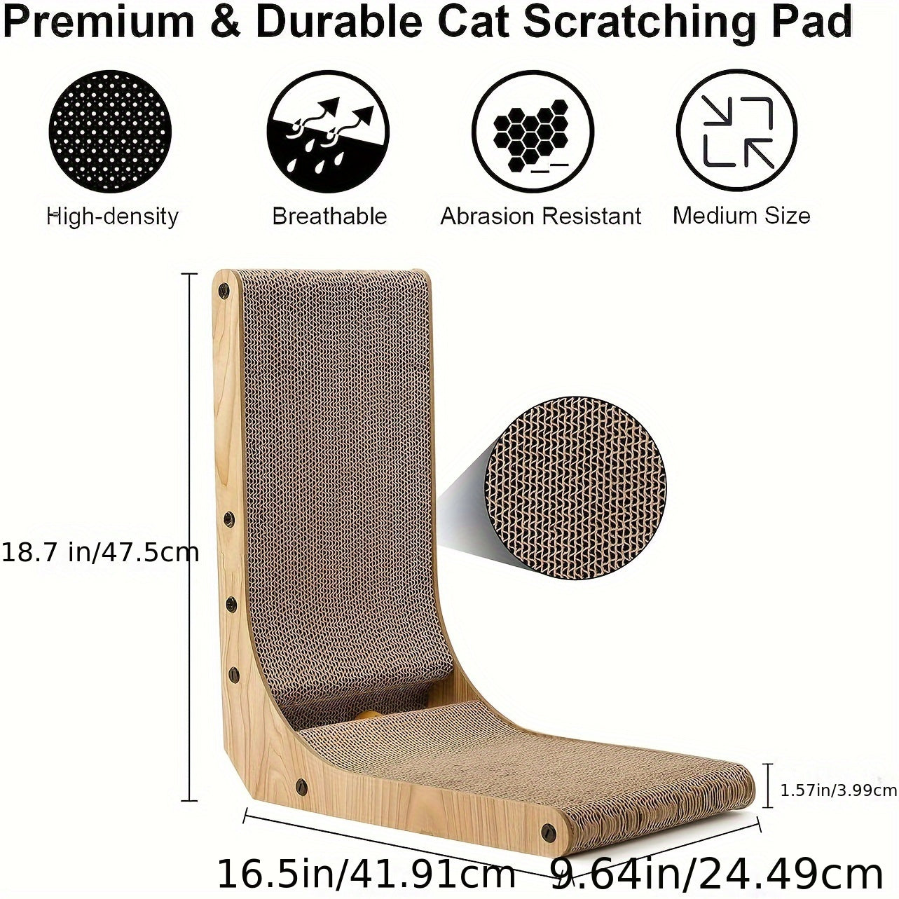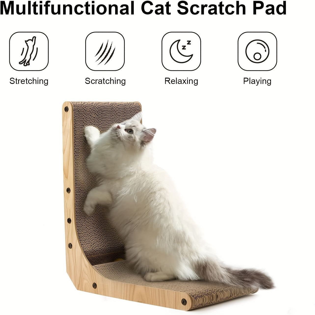 1/pcs, FUKUMARU™ L-Shaped Cat Scratcher With Ball Toy, Wall-Mounted Cardboard Scratching Pad for Indoor Cats