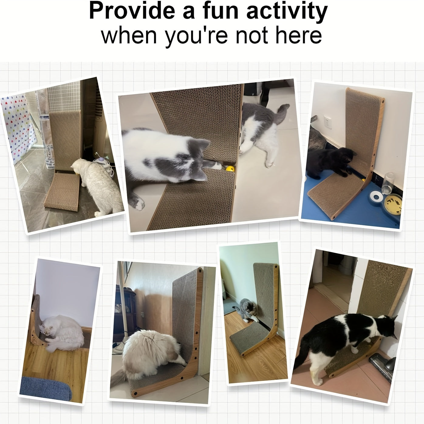 Introducing the FUKUMARU™ L-Shaped Cat Scratcher! This wall-mounted cardboard pad provides a designated scratching area for your indoor cat. The included ball toy adds extra entertainment for your feline friend. Keep your furniture safe while giving your cat a place to satisfy their natural scratching behavior.