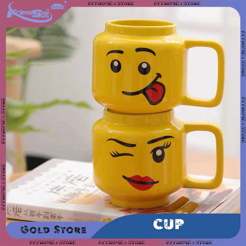 250ML Cartoon Ceramic Mug Expression Creative Coffee Milk Tea Water Cup Funny Smile Children Breakfast Cup Household Drinkware , silly, winking, happy, Skelton