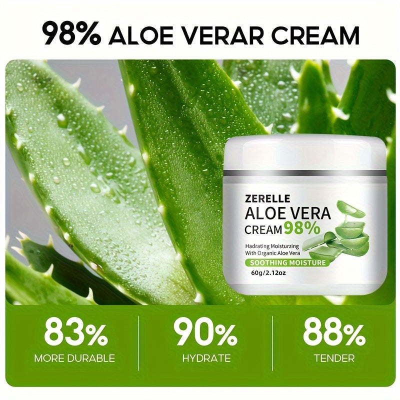 30G/ ZERELLE ™ALOE VERA CREAM with Hyaluronic Acid, Replenishes And Locks in Moisture, Keeps Skin Tender And Smooth, Gentle And Non-Irritating