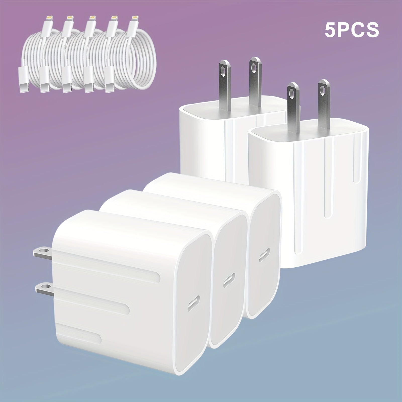 5 PCS iPhone Charger +CABLE MFi Certified Super-Fast Charging iPad Charger USB C Wall Charger Fast Charging 4FT Cable 5-PCS