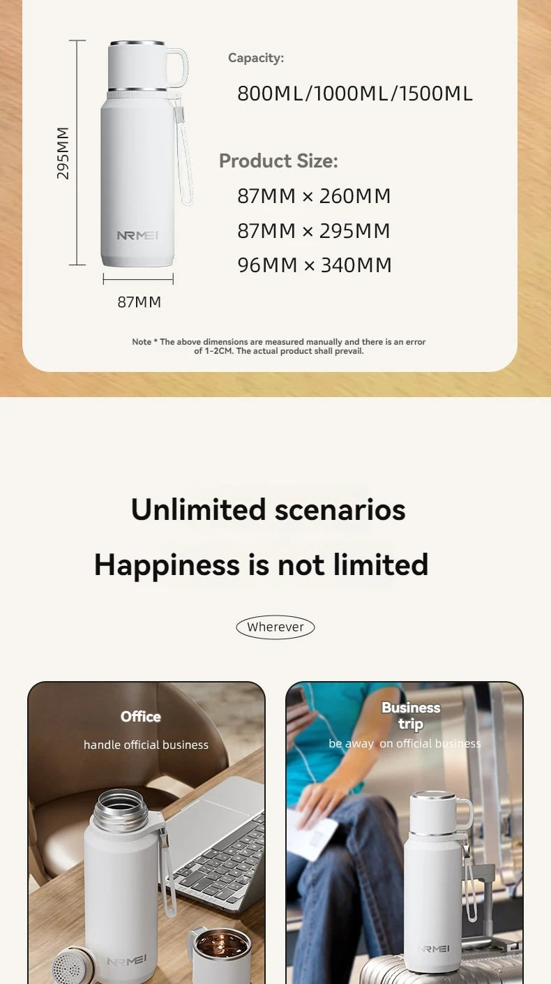 CUPGO™ |1.5L Thermos Water Bottle, Stainless Steel, Vacuum Flask, Perfect for Hot Coffee/Tea/Water, Heat Preservation Bottle, drinkware, Keeps Cold and Warm
