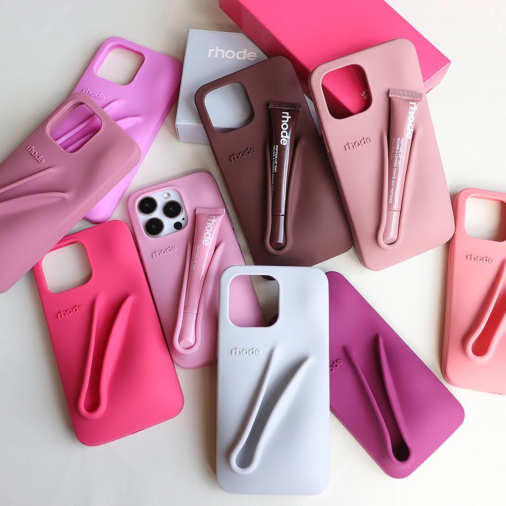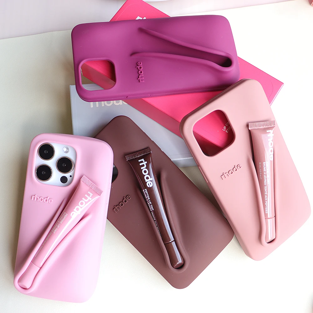 For IPhone15 14 13Pro Max Plus Stand Cover Autumn Limited Edition Rhode Lip Holder Soft Silicone Lipstick Phone Case