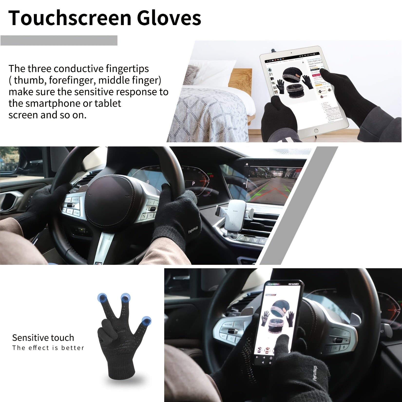 INTERWARM™ 3pcs Men /women Winter Essentials Set: Hat Scarf Gloves Slouchy Beanie Snow Knit Skull Cap Tuch Screen