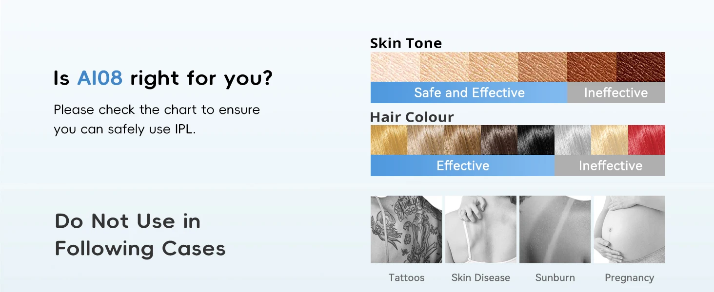【2 Weeks Visible Results】 Equipped with intense pulsed light which delivering max 22J effectively energy output and flash light, UENMOON IPL hair removal brings 80% hair root reduction within 2 weeks with consistent usage. Experience 97% hair reduction in 3 weeks, include legs, arms, underarms, bikini line, and even your face.