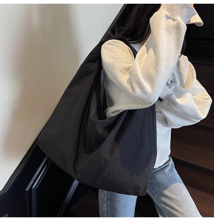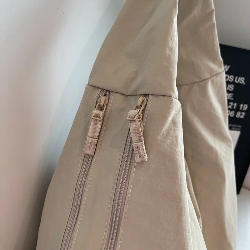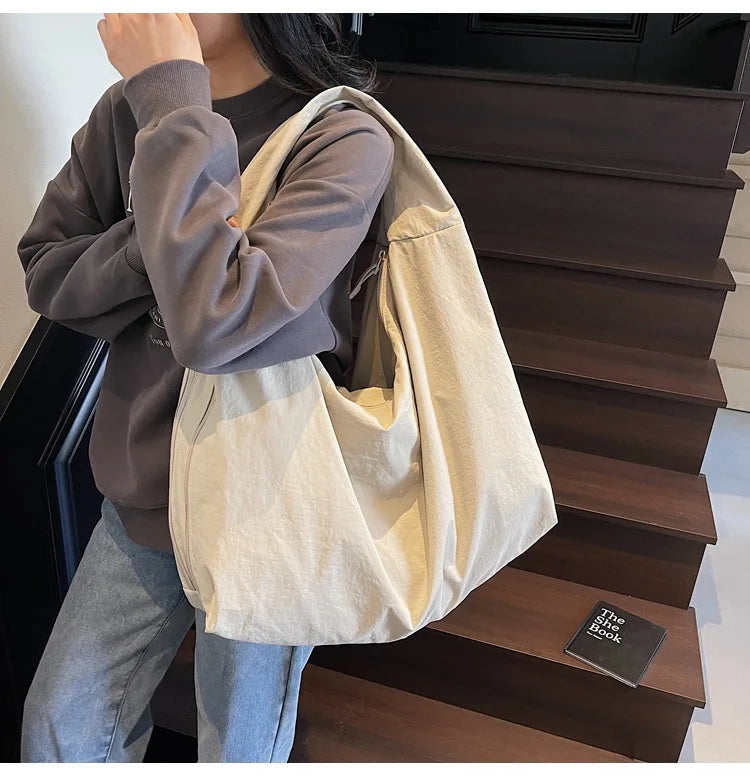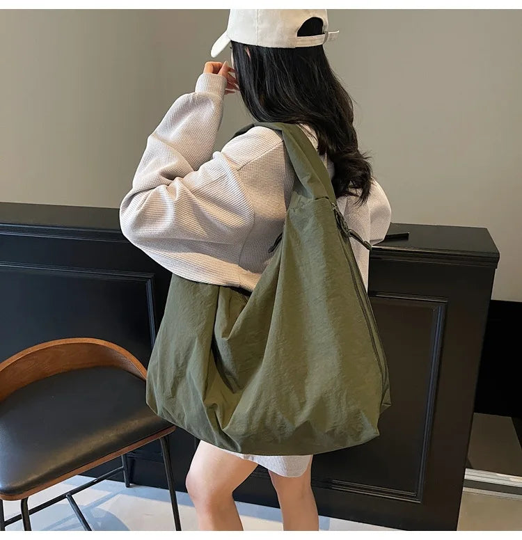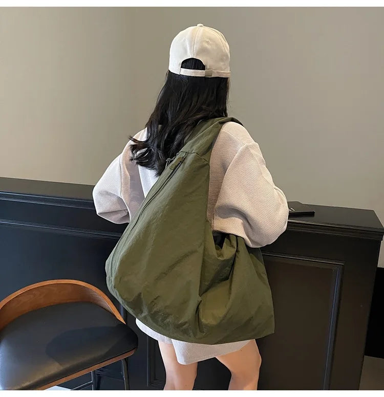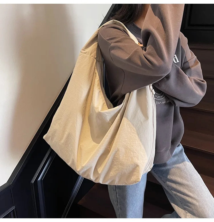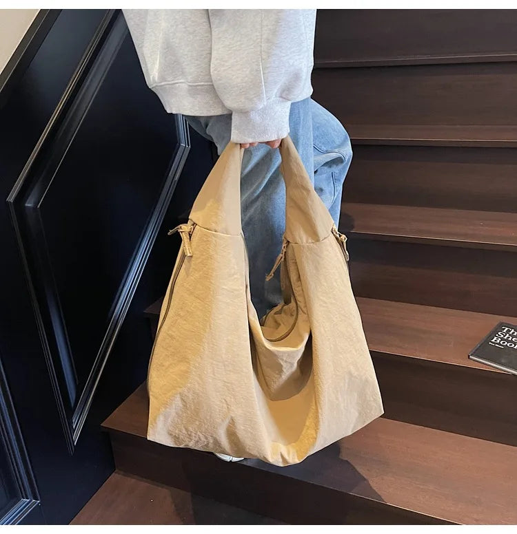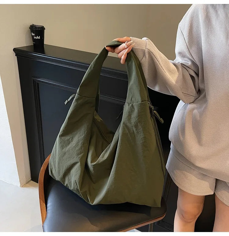 NYLOVA™ Chic Solid Color Nylon Tote Bag, Large Capacity Shoulder Bag with Multiple Zipper Pockets for College, Work & Everyday Use
