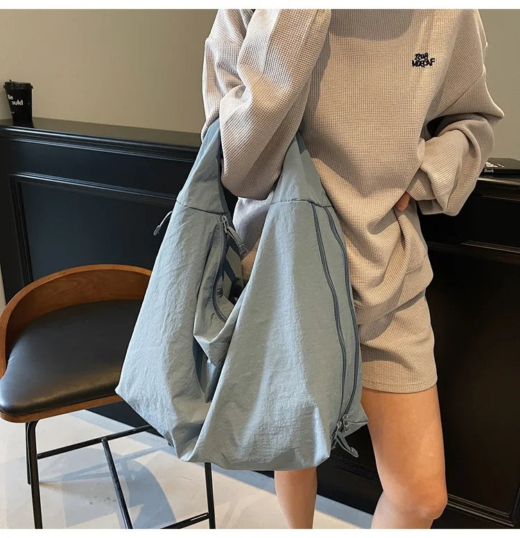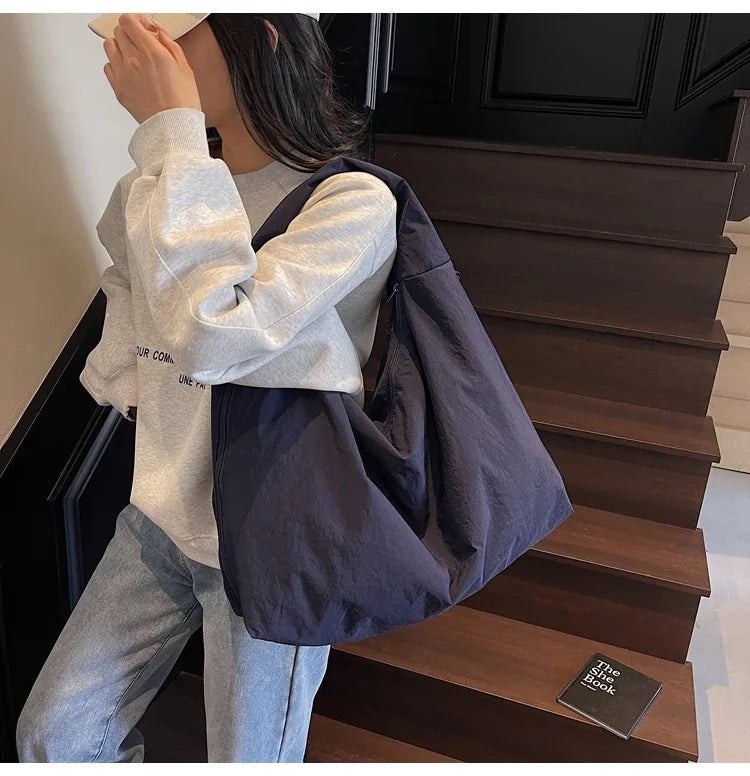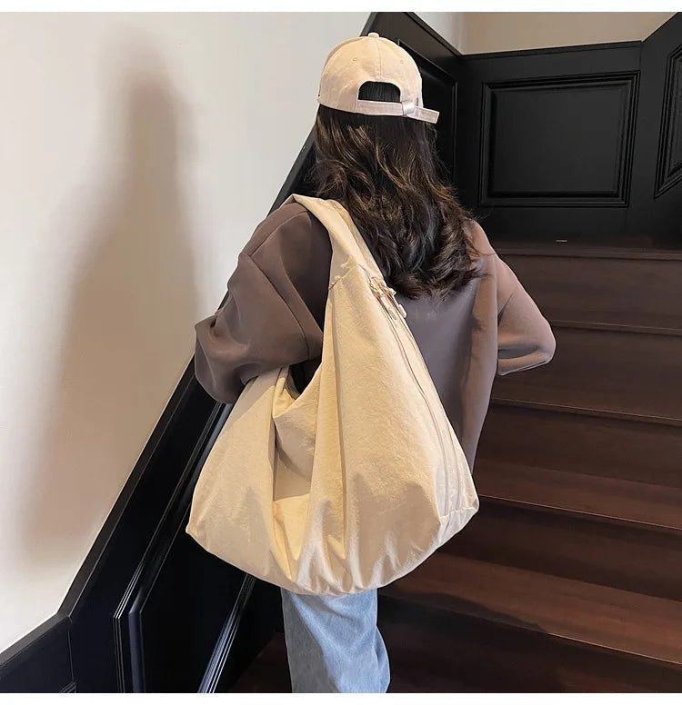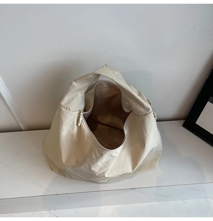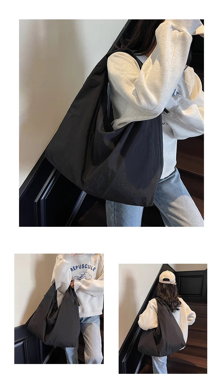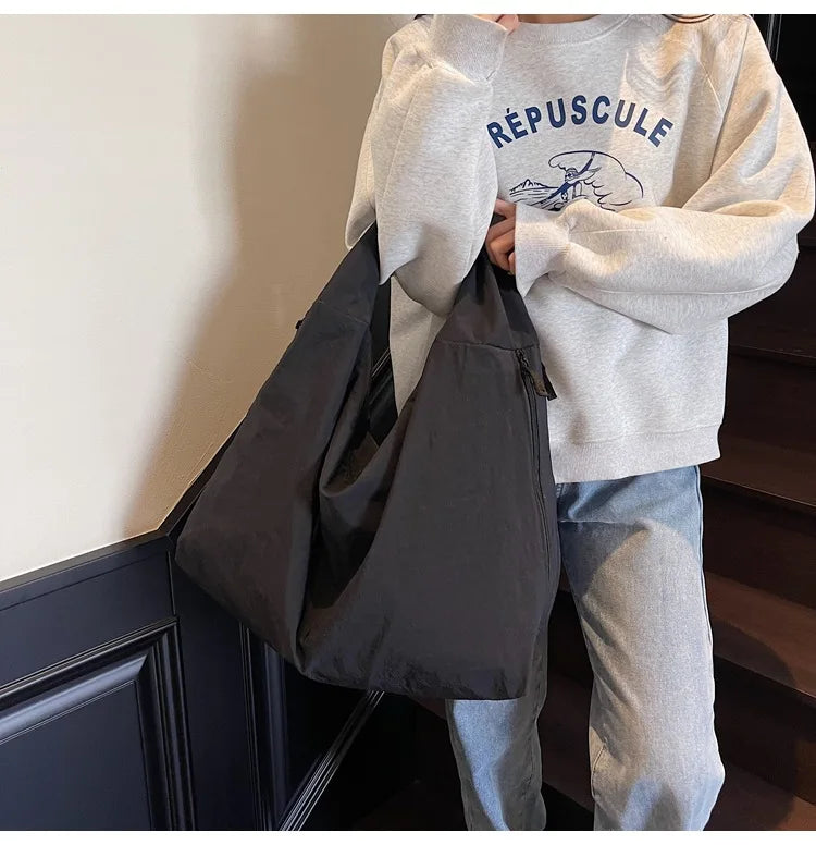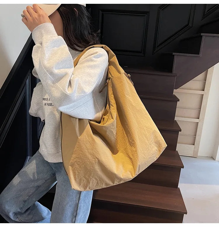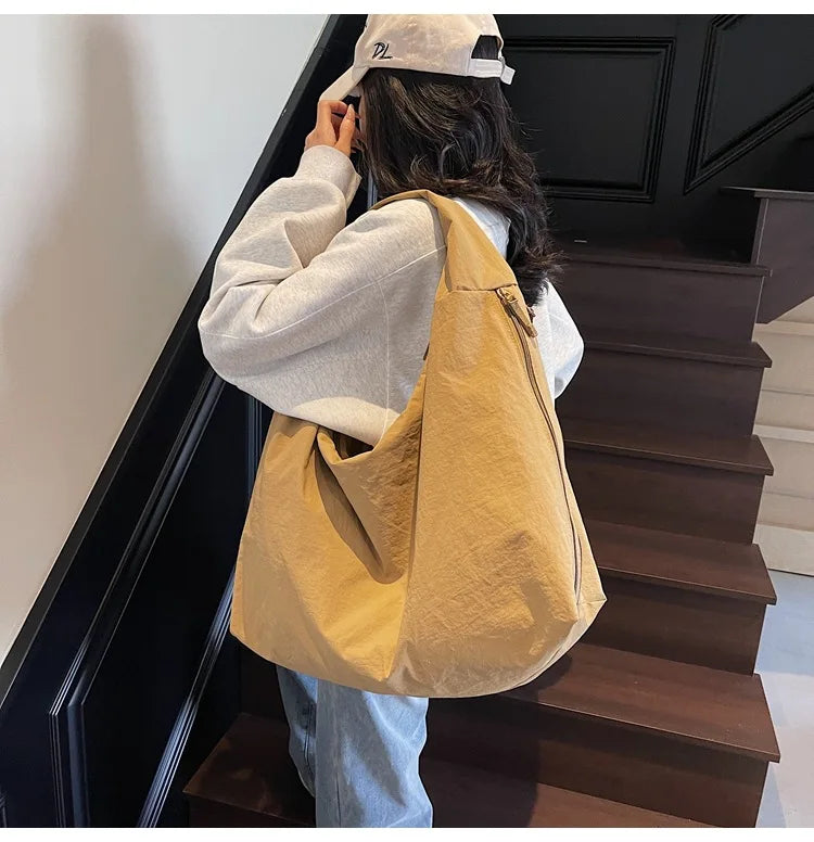 NYLOVA™ Chic Solid Color Nylon Tote Bag, Large Capacity Shoulder Bag with Multiple Zipper Pockets for College, Work & Everyday Use