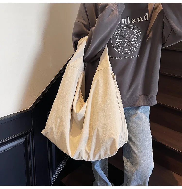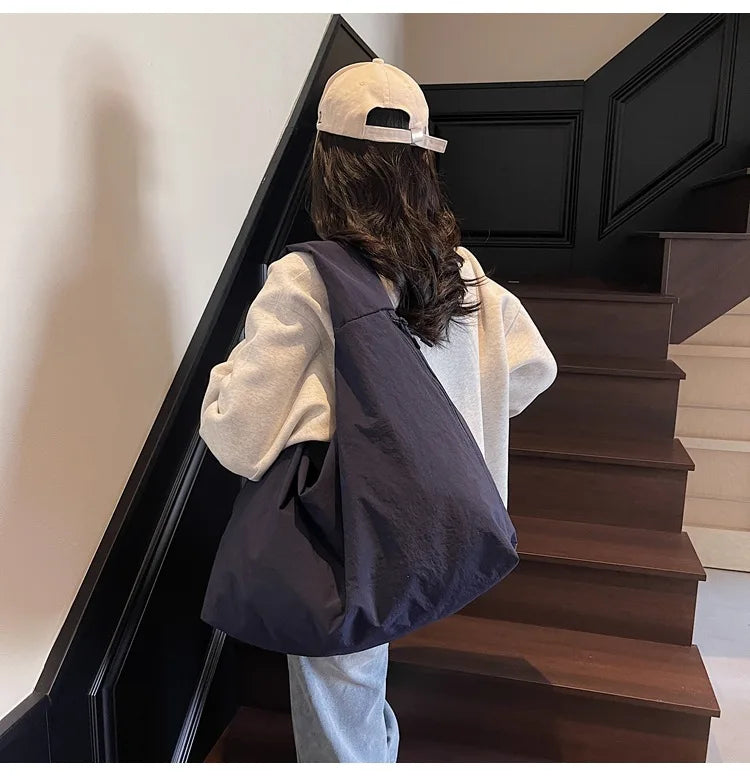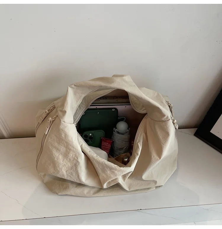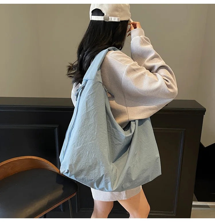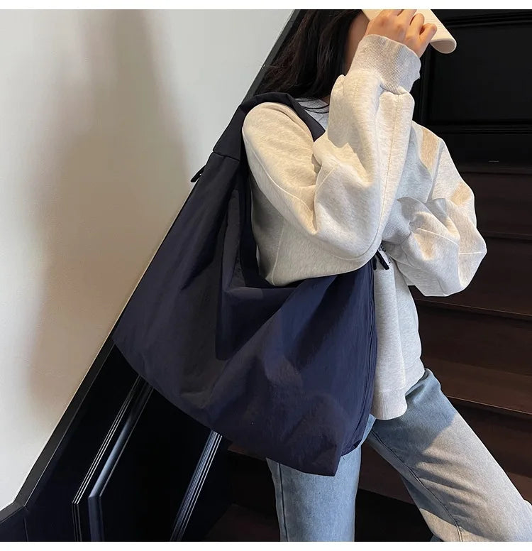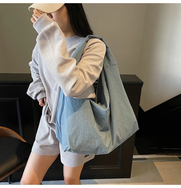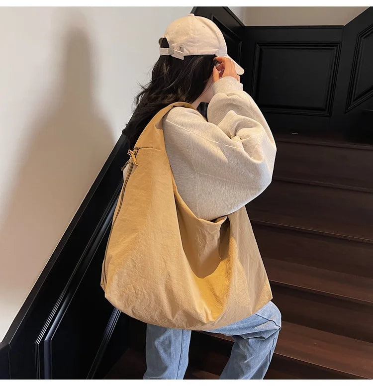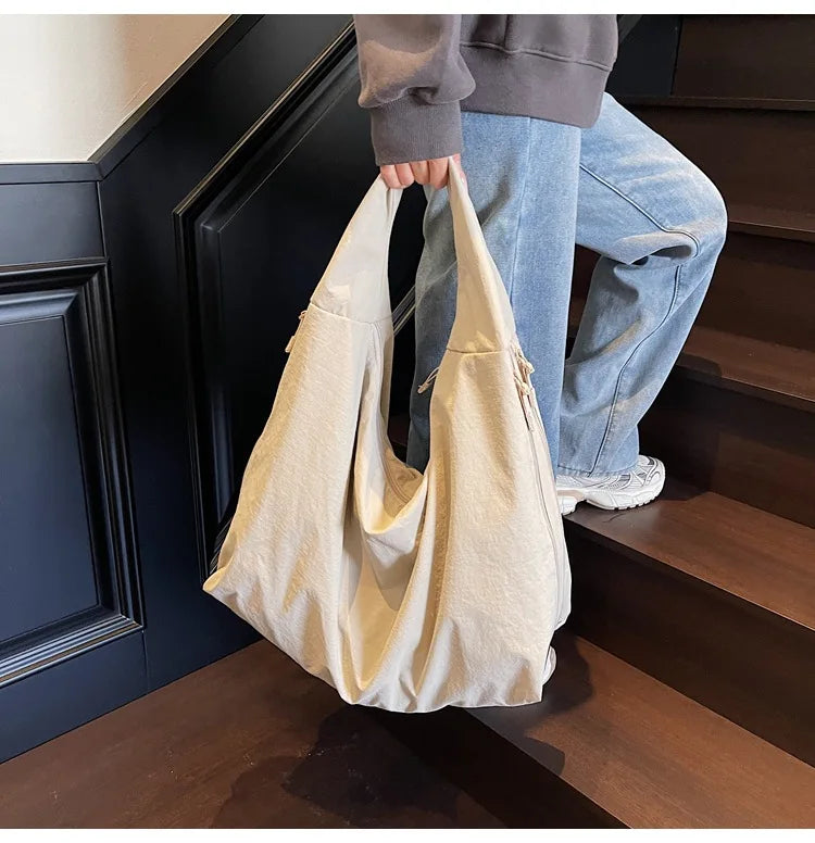 NYLOVA™ Chic Solid Color Nylon Tote Bag, Large Capacity Shoulder Bag with Multiple Zipper Pockets for College, Work & Everyday Use