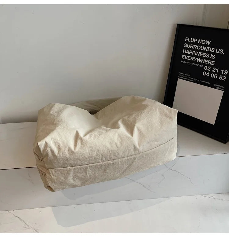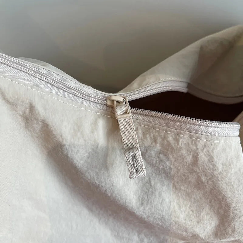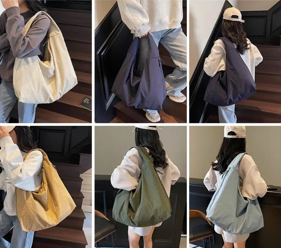 The NYLOVA™ Chic Solid Color Nylon Tote Bag delivers everyday practicality with a clean, minimalist look. Made from lightweight, durable nylon, it features a roomy main compartment plus multiple zip pockets to keep phone, keys, wallet, and small essentials organized. Comfortable shoulder straps make it easy to carry all day, and the large capacity handles books, a tablet, makeup pouch, water bottle, and more—great for college, office, errands, travel, or casual outings. A versatile, low-maintenance bag that pairs with any outfit while keeping your items secure and easy to find.