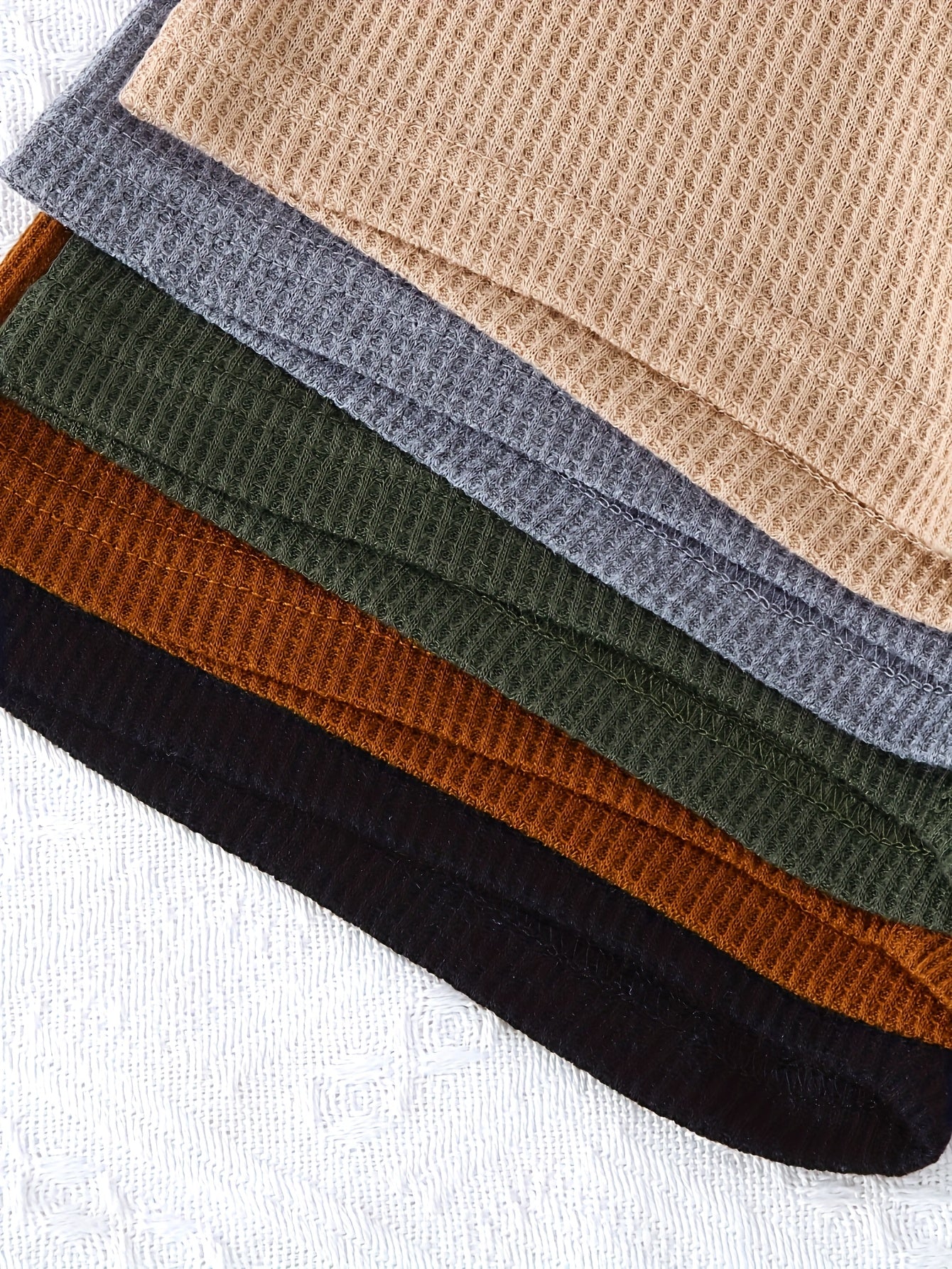 PLAYTIME™️10pcs OUTFIT Boys Casual Style Solid Color Soft and Comfortable Waffle Knit Fabric Short Sleeve Shorts Suit