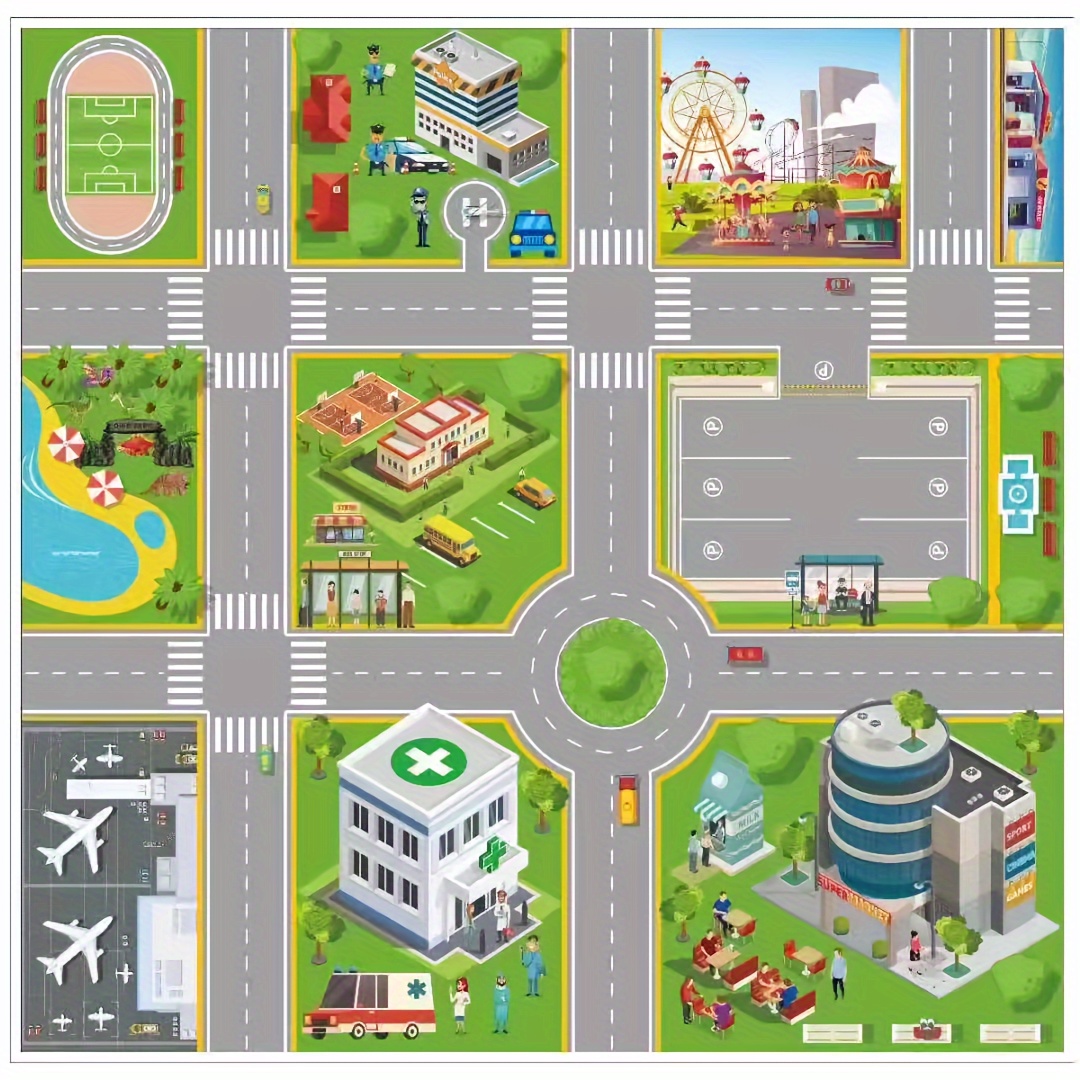 Pull-Back Racing Car Playset, Educational Inertia Vehicles with Track Map, Manual Push Play Cars, Includes Storage Box & Accessories, for Kids, Educational Toy for Boys & Girls Ages 3-6 Years