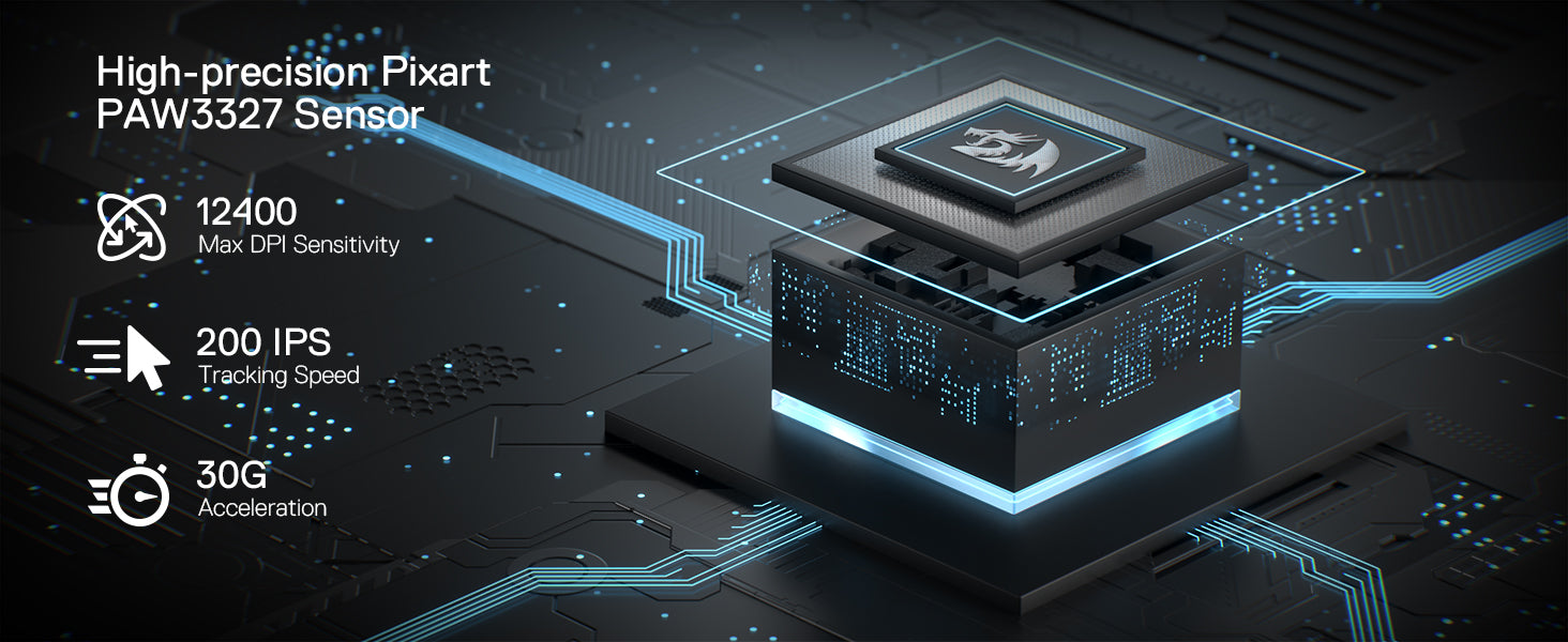 ✬ PROFESSIONAL GAMING MOUSE. Redragon M908 laser gaming mouse is designed with up to 12400 DPI, 5 adjustable DPI levels (500/1000/2000/3000/6200 DPI) meet your multiple needs, either for daily work or gaming. DPI can be adjusted freely by ±100 from 100 to 12400 via software. 1000 Hz polling rate, 30G acceleration and high-precision Pixart PMW3327 Sensor giving you a greater edge over your competition.