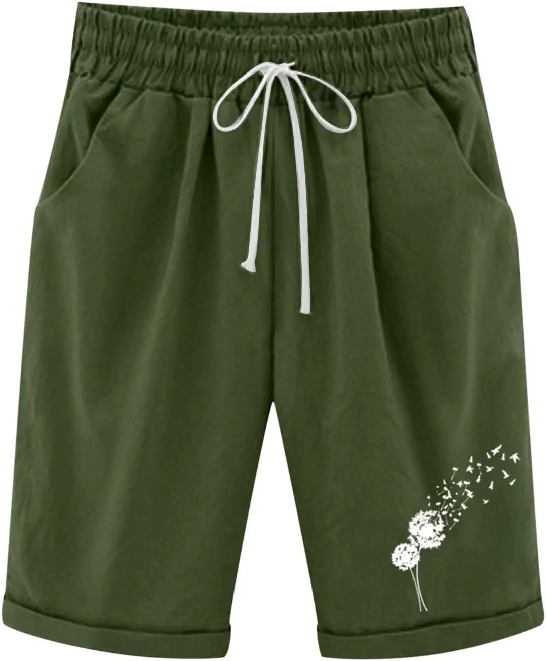 SASS™️Bermuda Shorts for Women Knee Length Plus Size Cotton Linen Casual Shorts Drawstring High Waist Shorts with Pockets Yoga mat