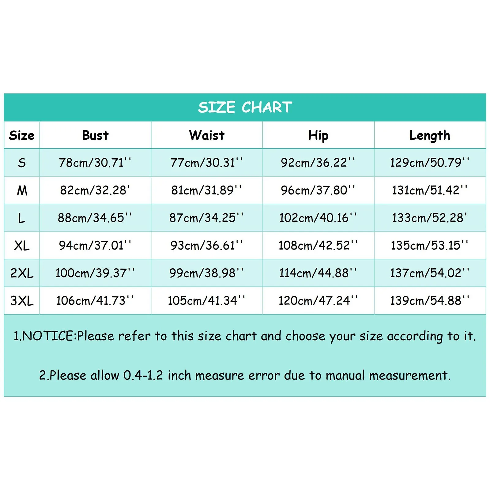 | Size:XXL | Bust:100cm/39.37'' | Waist:99cm/38.98'' | Hip:114cm/44.88'' | Length:137cm/53.94'' |