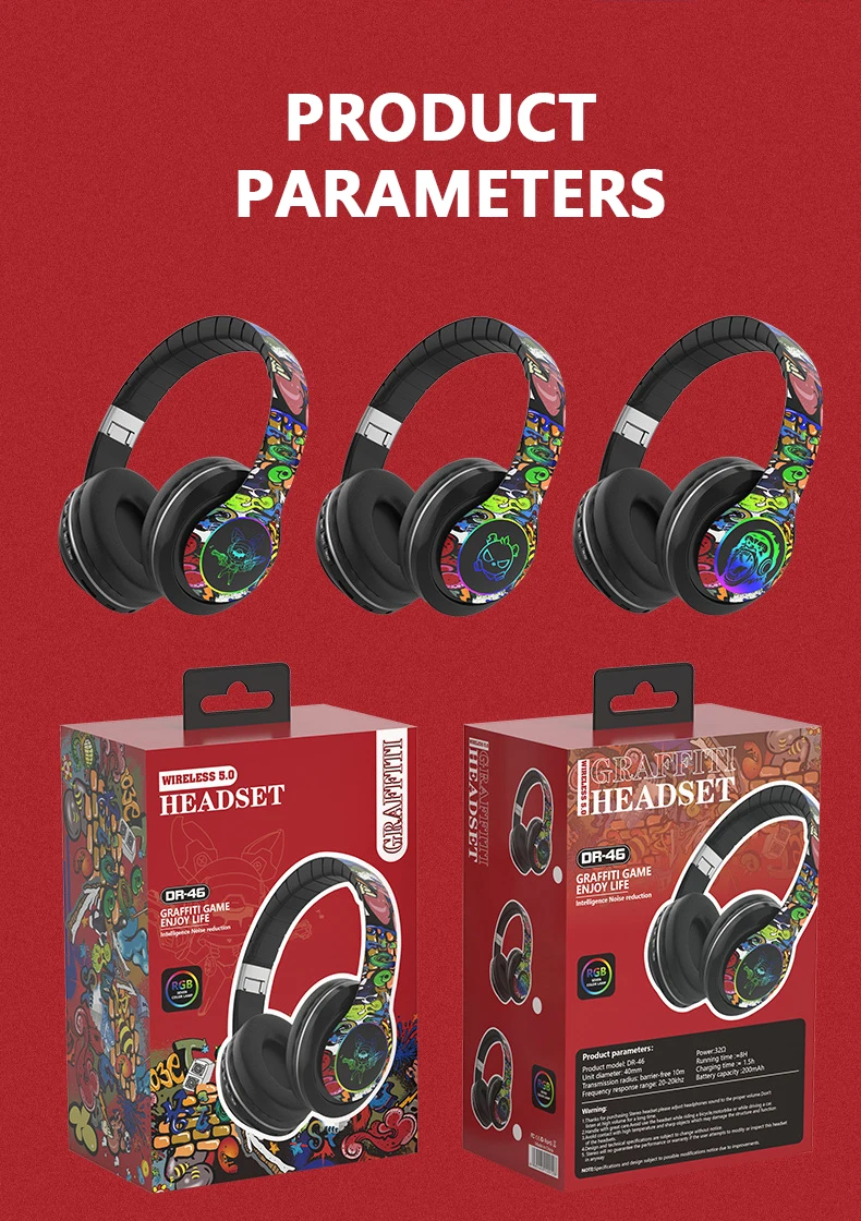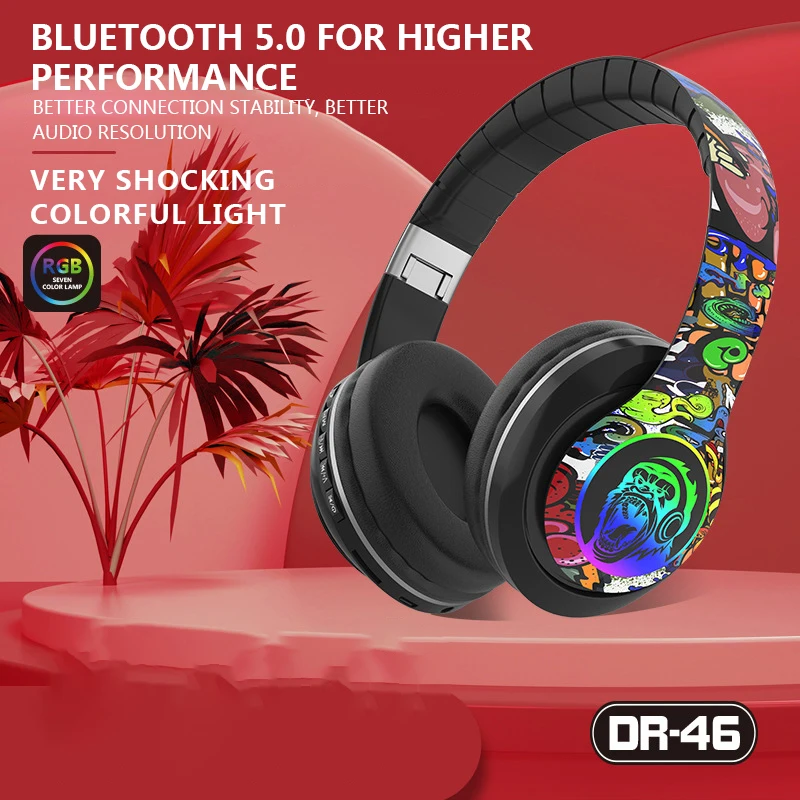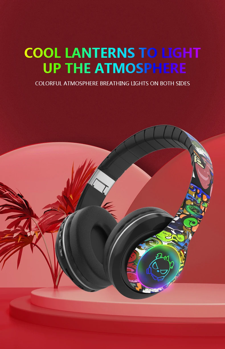 Glowing Bluetooth Headphones Graffiti Wireless Earphones With Mic Noise Cancel Headphone Super HiFi Deep Bass headset gamer 2023