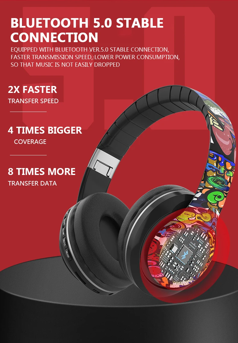 SOUND CLOUD HEADPHONES™ Glowing Bluetooth Headphones Graffiti Wireless Earphones With HD Mic Noise Cancel HiFi Deep Bass headset gamer Fone