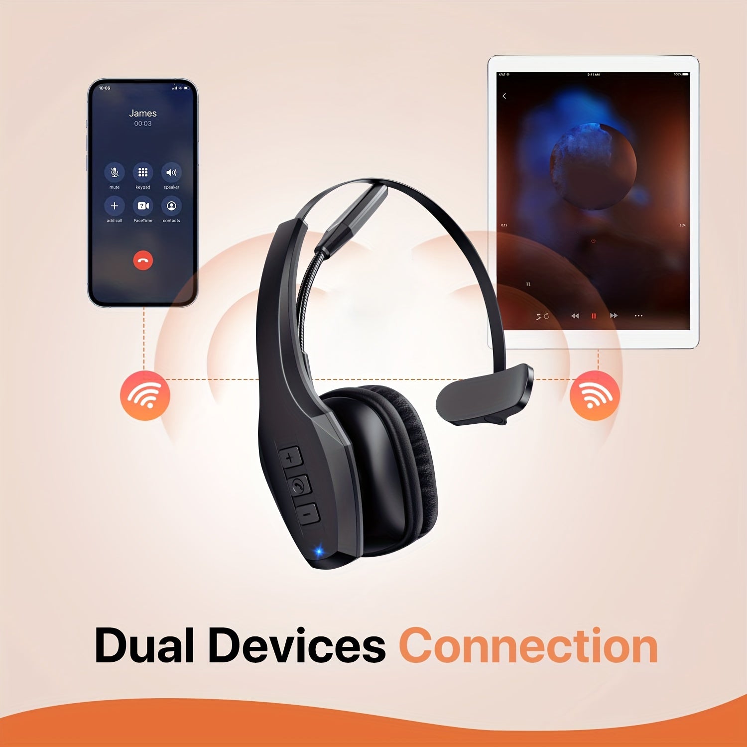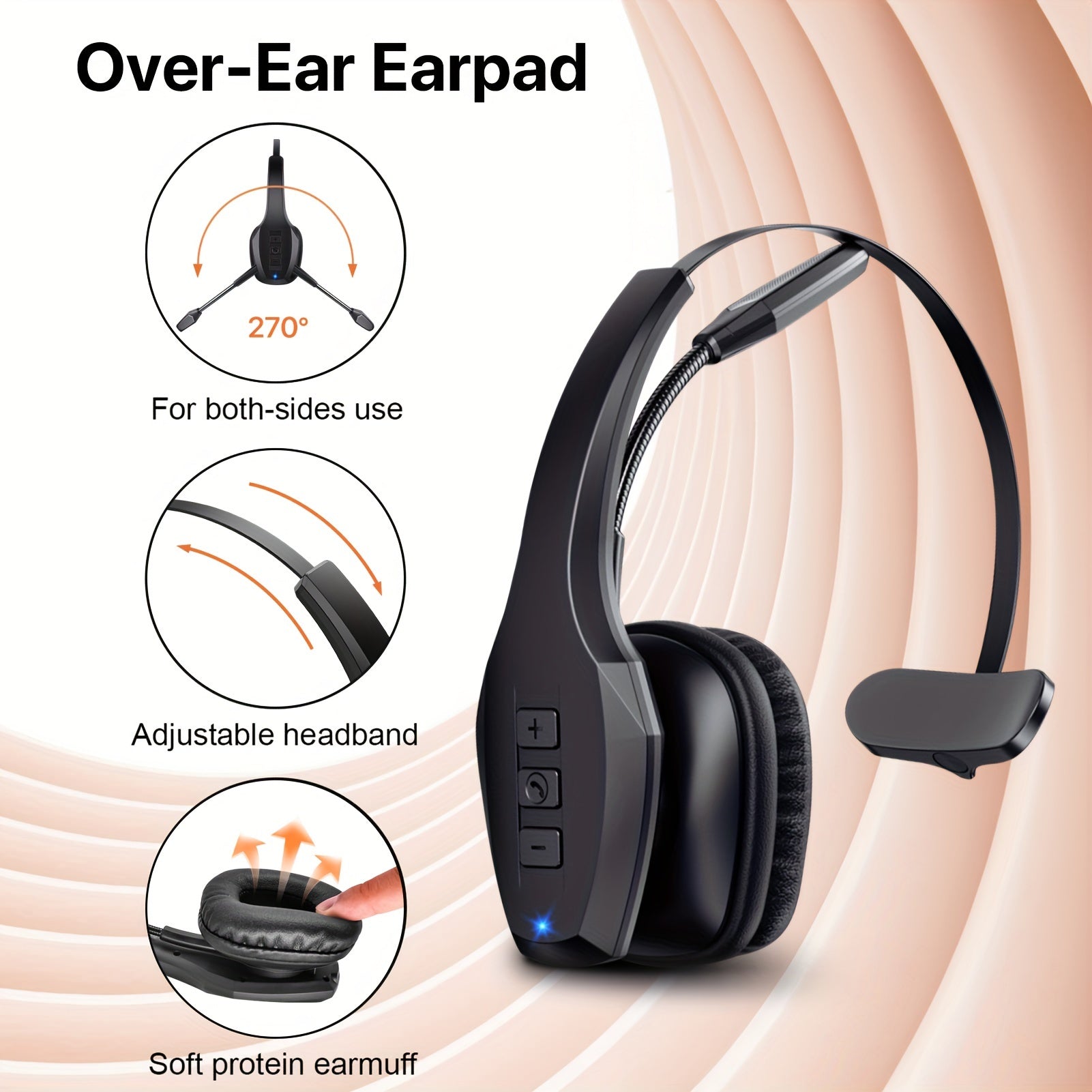 Trucker Headset, 55Hrs Working Time 36Hrs Talking Time Wireless Headphone with Dual Noise Cancelling Microphone Headset for PC Cell Phones, Computer, Truck Driver
