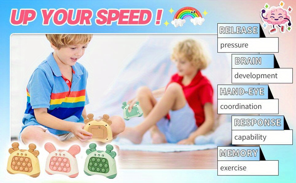 Experience The Ultimate In Sensory Play With Our Pop Game Sensory Fidget Toy! Designed To Delight Children And Adults Alike, This Innovative Light-up Game Controller Offers Endless Hours Of Fun. Whether At Home Or On The Go, Challenge Cognitive Skills, Aim For High Scores, Tackle Advanced Levels, Or Enjoy The Laughter With Friends In Multiplayer Mode. Made From Top-quality ABS Material, This 100% Brand New Fidget Toy Is Robust, Safe, And Ready To Withstand The Rigors Of Daily Play. Choose Your Favorite From The Vibrant Pink Or Green Colors, Each Adorned With A Cute Deer Or Rabbit Pattern. Ideal For Gifting, This Sensory Fidget Game Comes Complete With A User Manual For Hassle-free Setup. Note: The Actual Color May Vary Slightly Due To Different Screen Settings, And Dimensions May Have Minor Discrepancies Due To Manual Measurement. Get Ready To Pop, Play, And Relieve Stress With Just A Click – Add To Your Cart Now!