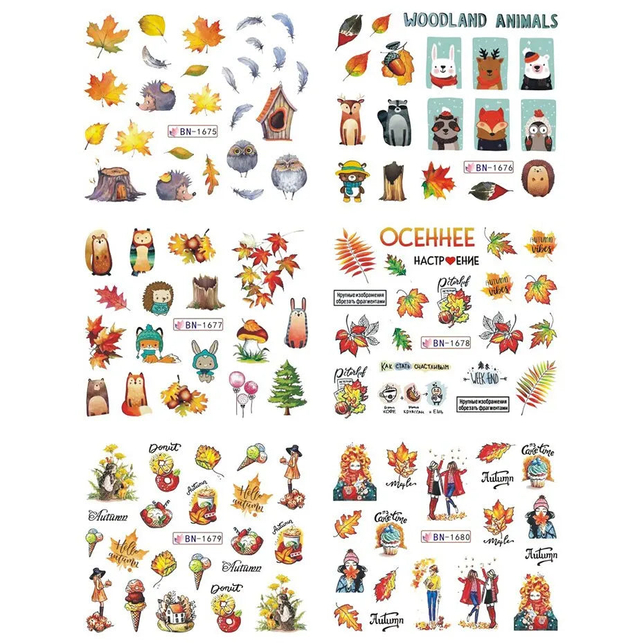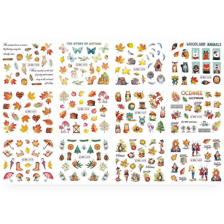 UP nail™ 12pcs Fall Gold Leaves Nail Stickers Sliders for Manicure Maple Leaf Nail Art Water Transfer Decals Foils Autumn Decorations