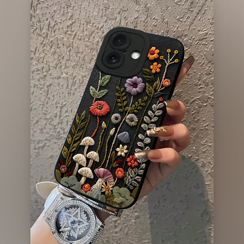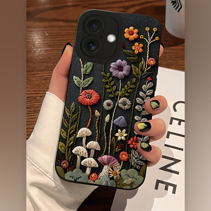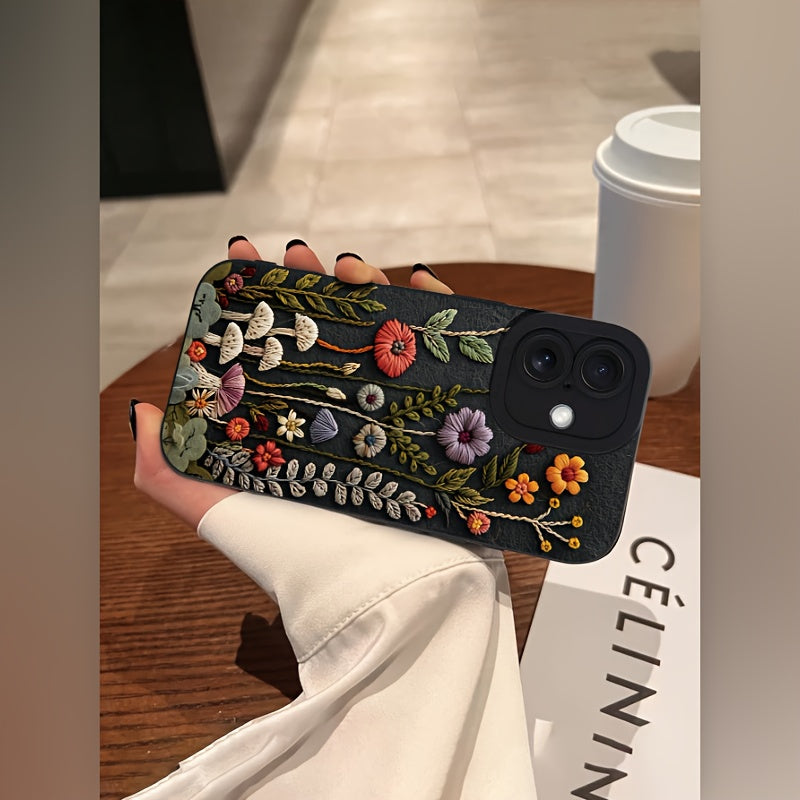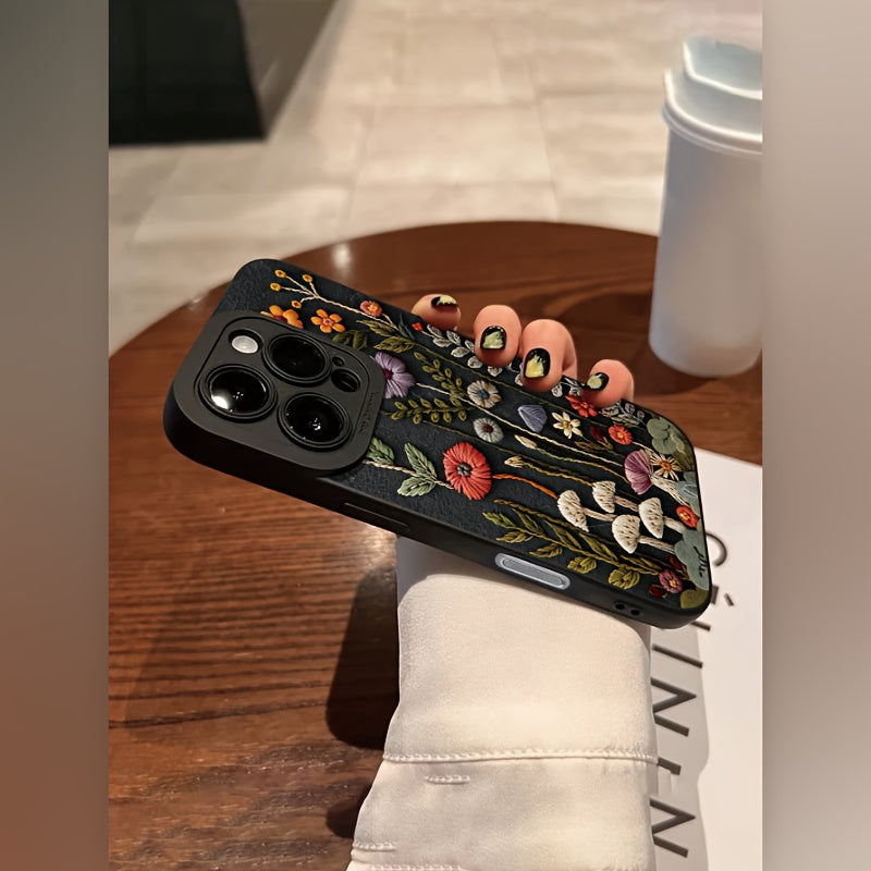 PHONE CASE VINTAGE™ Embroidered Flower Eye Mobile Phone Case Compatible with Apple 16promax