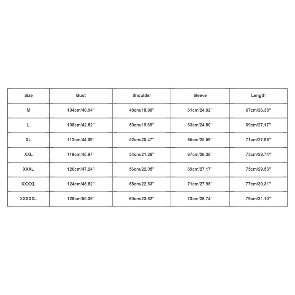 | Size:XXXXXL | Bust:128cm/50.39'' | Shoulder:60cm/23.62'' | Sleeve:73cm/28.74'' | Length:79cm/31.10'' |